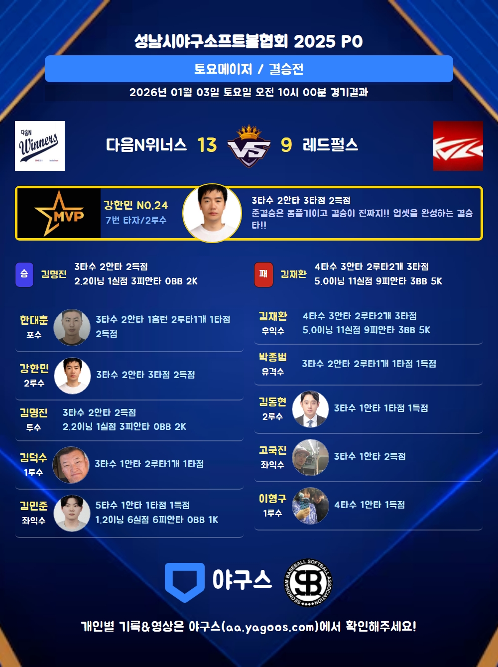 다음N위너스 타자 기록