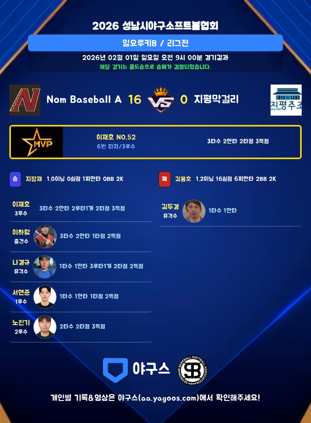 해당 경기는 콜드승으로 승패가 결정되었습니다.