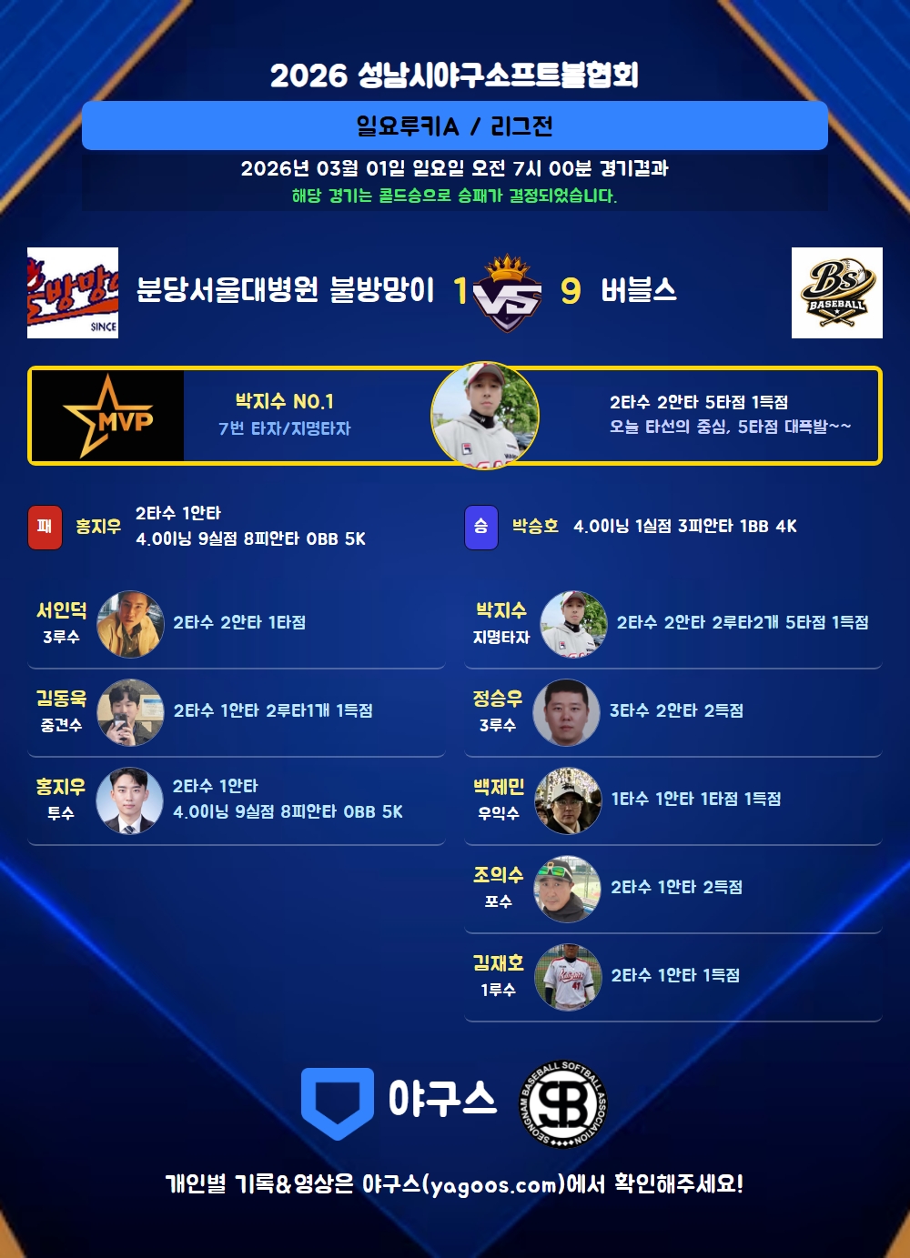 해당 경기는 콜드승으로 승패가 결정되었습니다.
